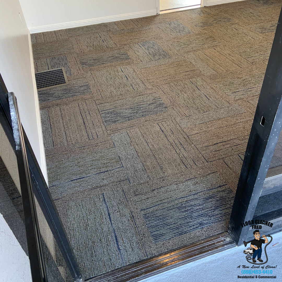 When you reach out to a commercial carpet cleaning company, you expect its employees to do several things. They will start by inspecting the state of your floors and carpets to decide the cleaning approach required. Once the right approach has been decided upon, troubled areas have been identified, and furniture has been moved, cleaning can commence. At Floor Cleaner Fred we take a multi-step approach using industry-leading equipment, allowing us to clean deeper, more thoroughly, and efficiently than companies using outdated equipment. To begin, we use an eco-friendly pre-spray to spray down all areas and follow up with a state of the art agitator called a Brush Pro, allowing us to agitate pre-spray deep into the carpet fibers, breaking down soils, spilled coffee, and other contaminants that create sticky, smelly, and unsightly stains in the carpet. Once the pre-spray has been applied and agitated, we use our truck-mounted carpet cleaning system capable of outputting up to 250 degree water and up to 1,200 PSI, to extract the solution to further break down stains, and clean the carpet throughout your office. While the cleaning wand is spraying hot or cold water and solution into the carpet fibers it is also using extremely powerful suction to quickly remove the water, solution, and contaminants that have been broken loose in the carpet fibers. This extremely thorough process allows Floor Cleaner Fred to quickly and efficiently clean your carpets so that your business can resume! We understand that downtime costs money, so it should be avoided at all costs. We’re able to accomplish a thorough cleaning by utilizing our industry-leading equipment, experience, and knowledge, allowing you to resume business faster, while making your carpets look, smell, and feel like new.